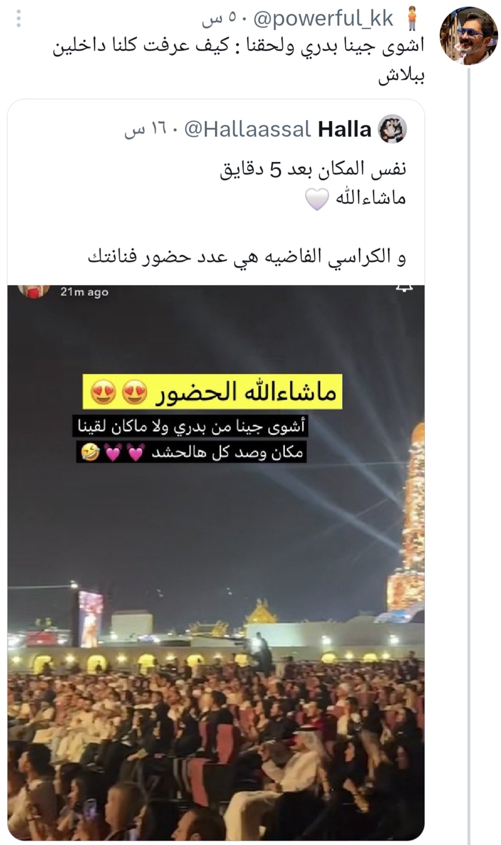 قالت في حال ماورم الصورم اكثر من حفلة امس نزلت لكم جلسة الرياض يوتيوب🦦