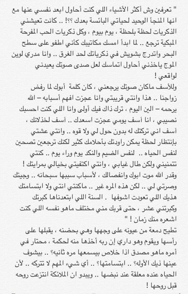 أبيك و ما أبي بُعدك .. و لكنّ البلا منّي ! أنا و الماضي و خوفي .. ثلاثه ، ما تسامحنا و صحيح ارتحت لك مرّه " و هذا اللي مخوّفني ! " لأنّي قلوبنا تصبح ضعيفه .. ضعيفه .. ضعيفه لا من ارتحنا